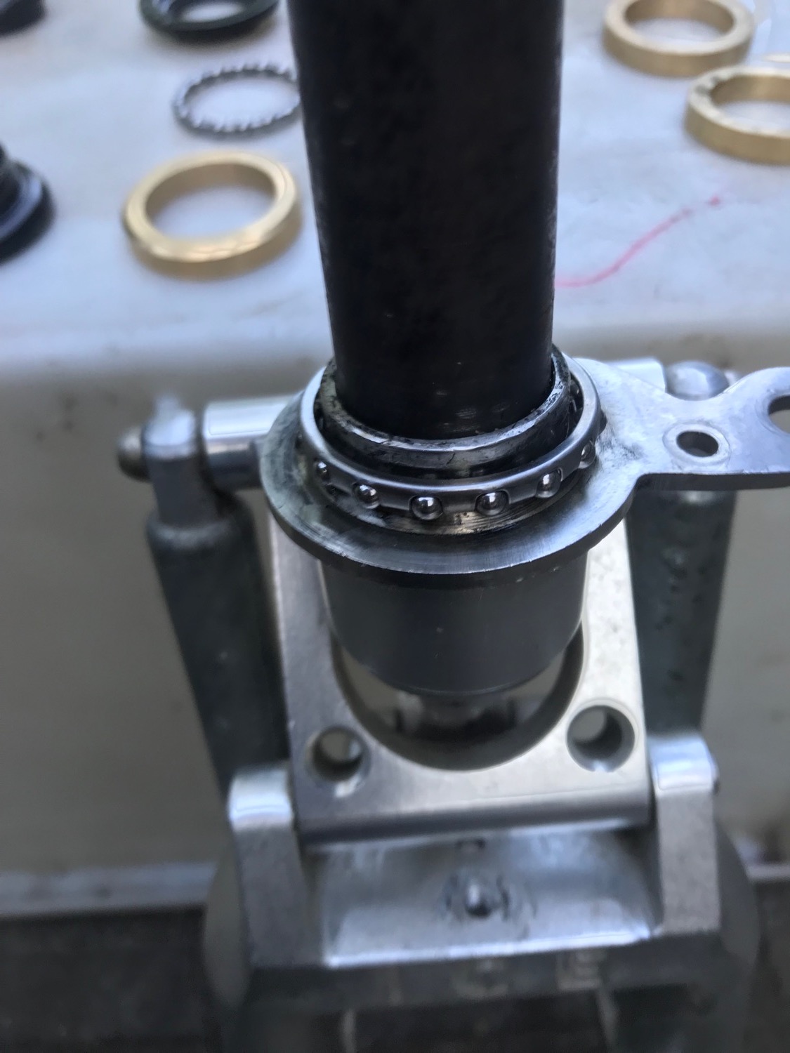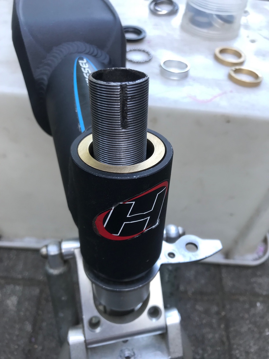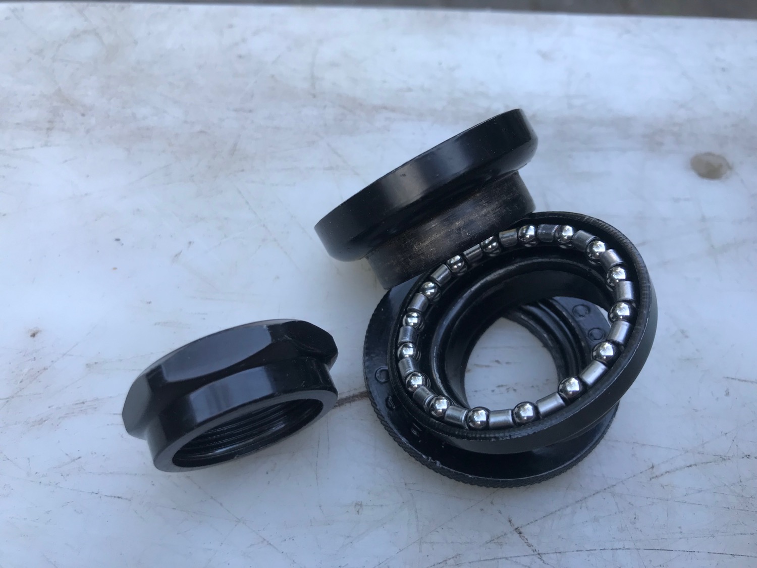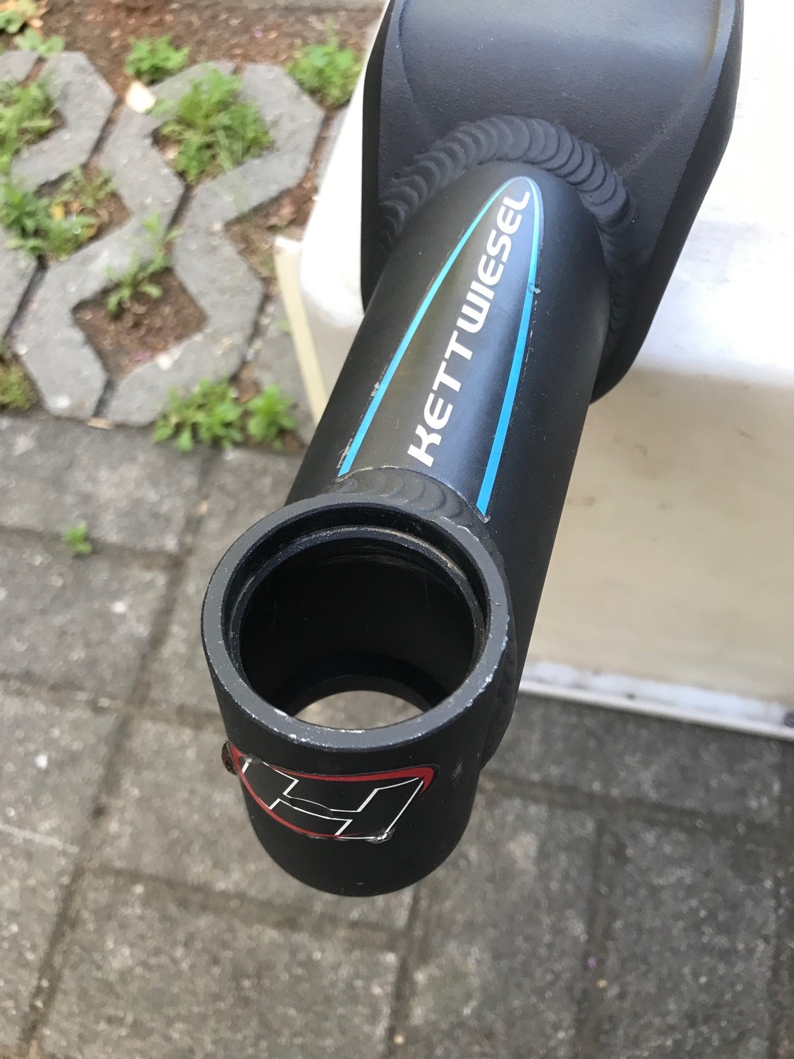 Hohes Wiesel fragte mich ob man die 1Zoll Lagerschalen nicht direkt in die Öffnung drücken könnte. Bei dem hier gezeigten Steuerlager würde es vom Platz her auch fast +-passen. Aber die haben im Holm so wenig Auflagefläche und ich denke auf Zeit werden sie sich dort auch ein-verkanten.