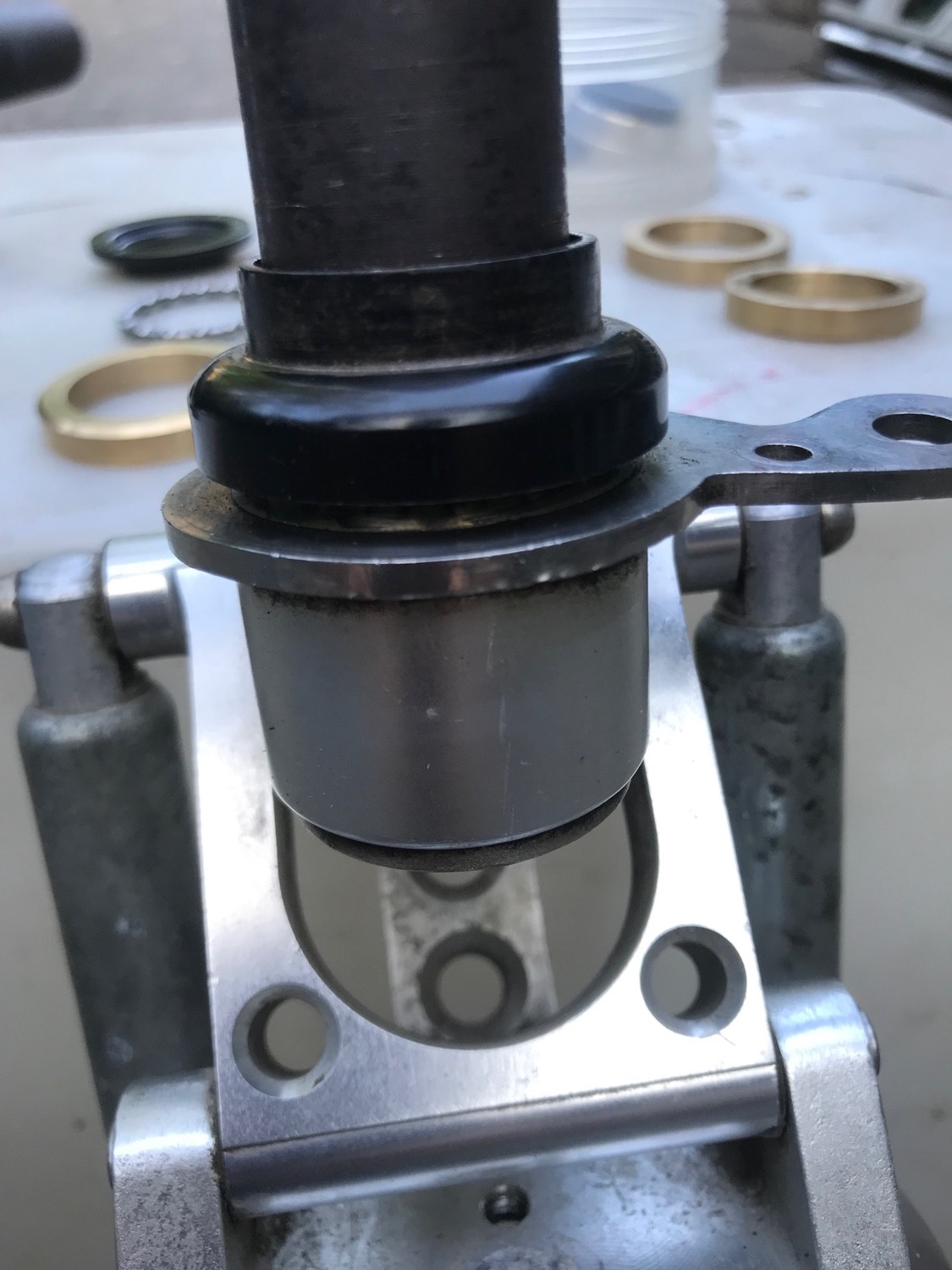 Die Schale vom Steuersatz incl. Kugellager aufgesteckt.